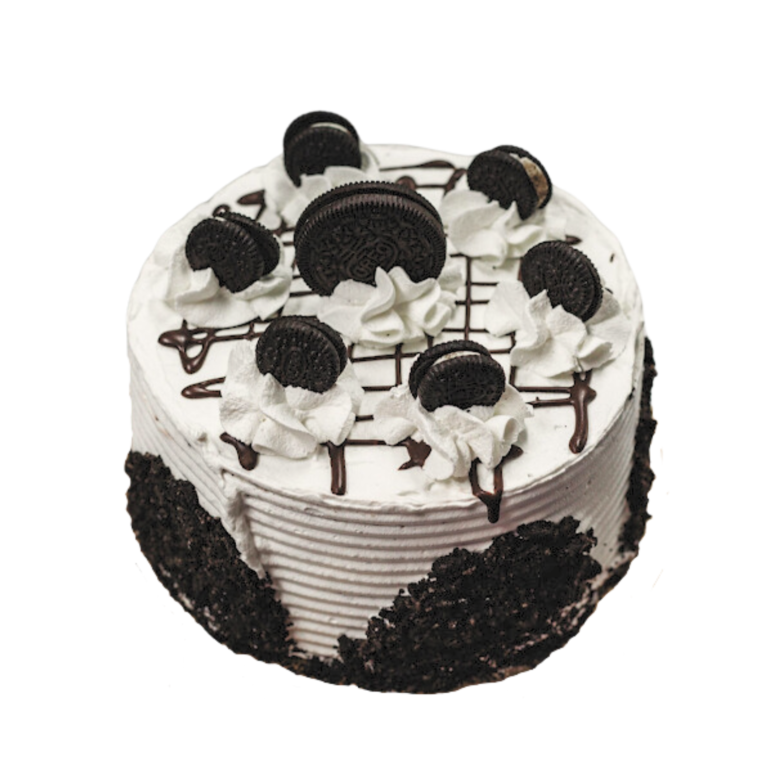- décoré de garniture fouettée et de morceaux de biscuits Oreo.